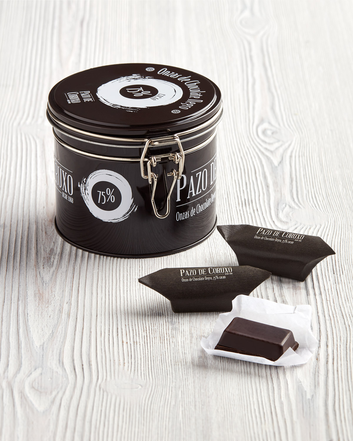Chocolate negro artesano 75% en onzas, delicioso secreto bien guardado bajo la tapa de esta preciosa latita que te servirá para “ocultar” otros pequeños pecados cuando hayas acabado con estas onzas!!