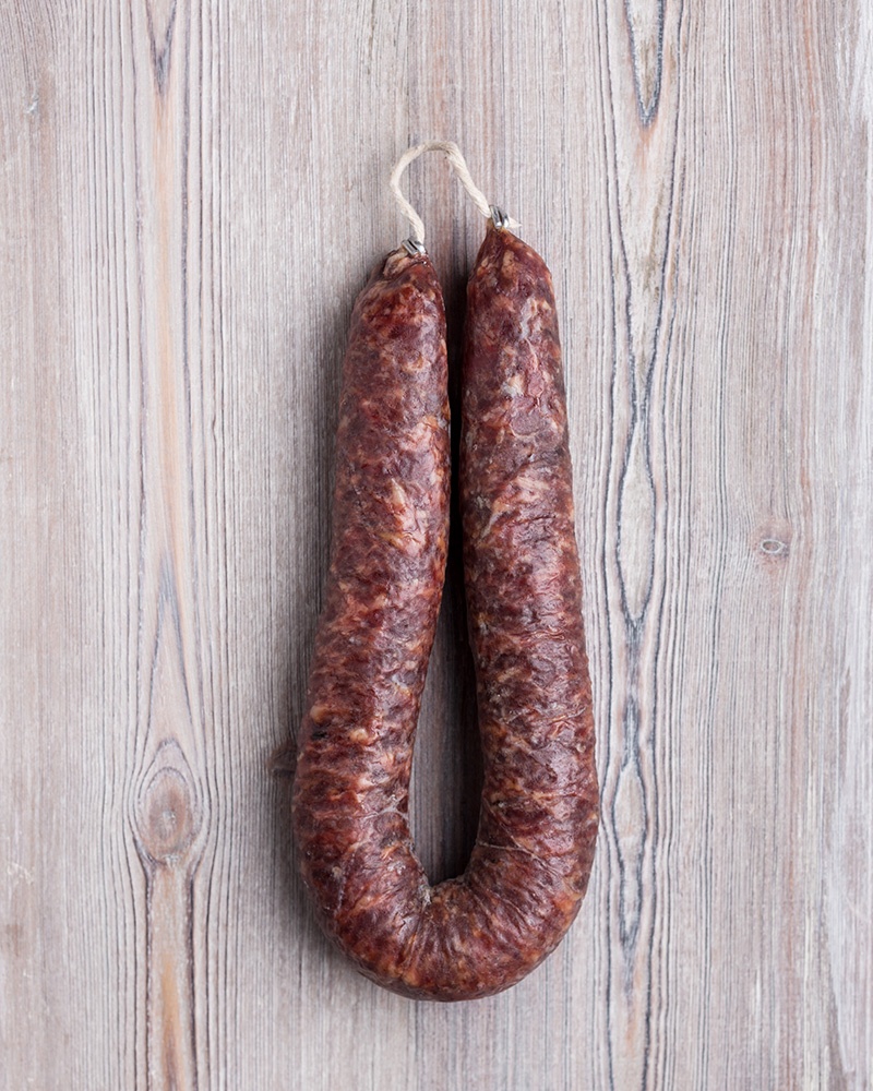 Embutido de León artesano de curación natural . Reconocido por la Asociación de Artesanos de Castilla y León por su sabor. Materia prima de calidad y la mezcla justa de especias hacen de este Salchichón de Herradura un bocado excepcional